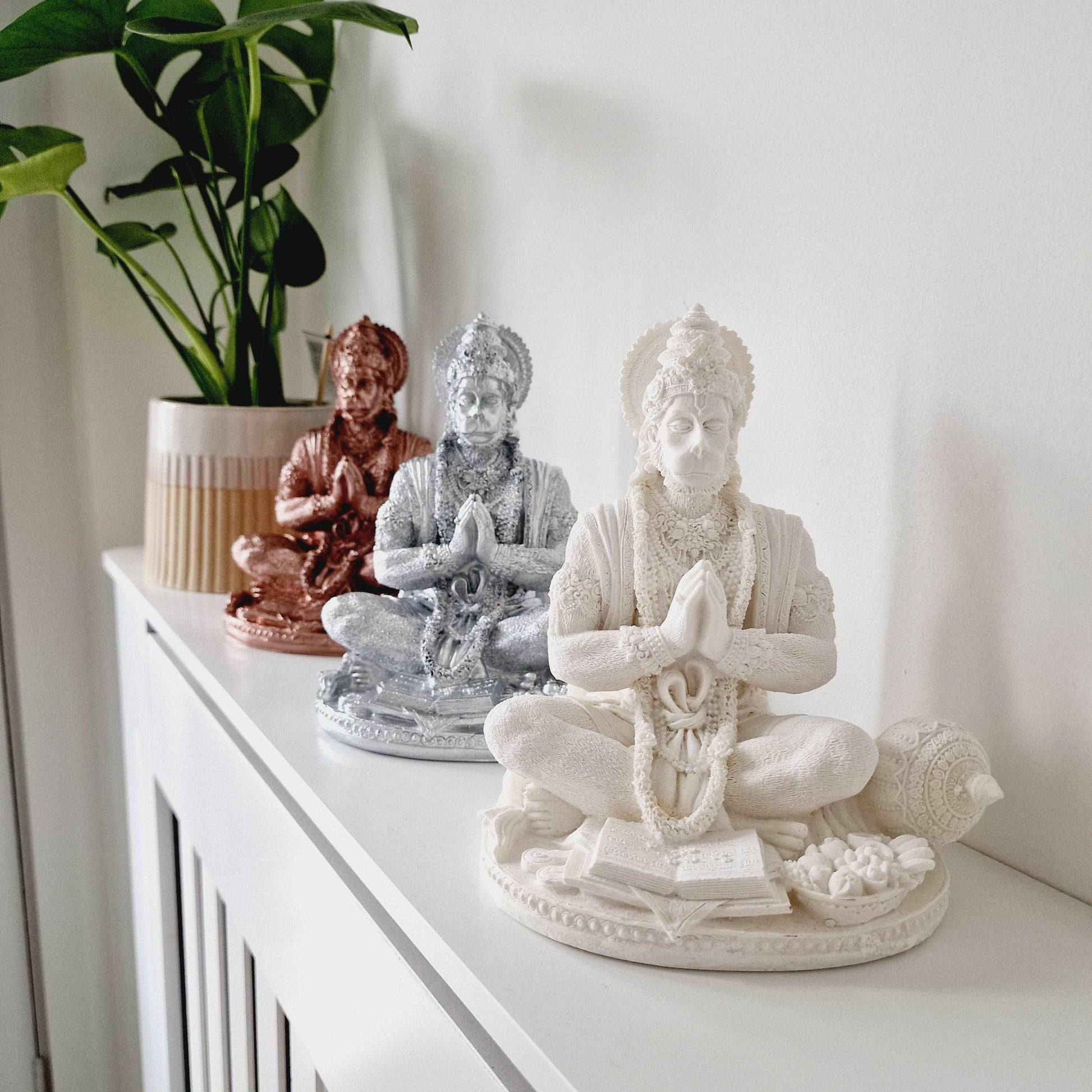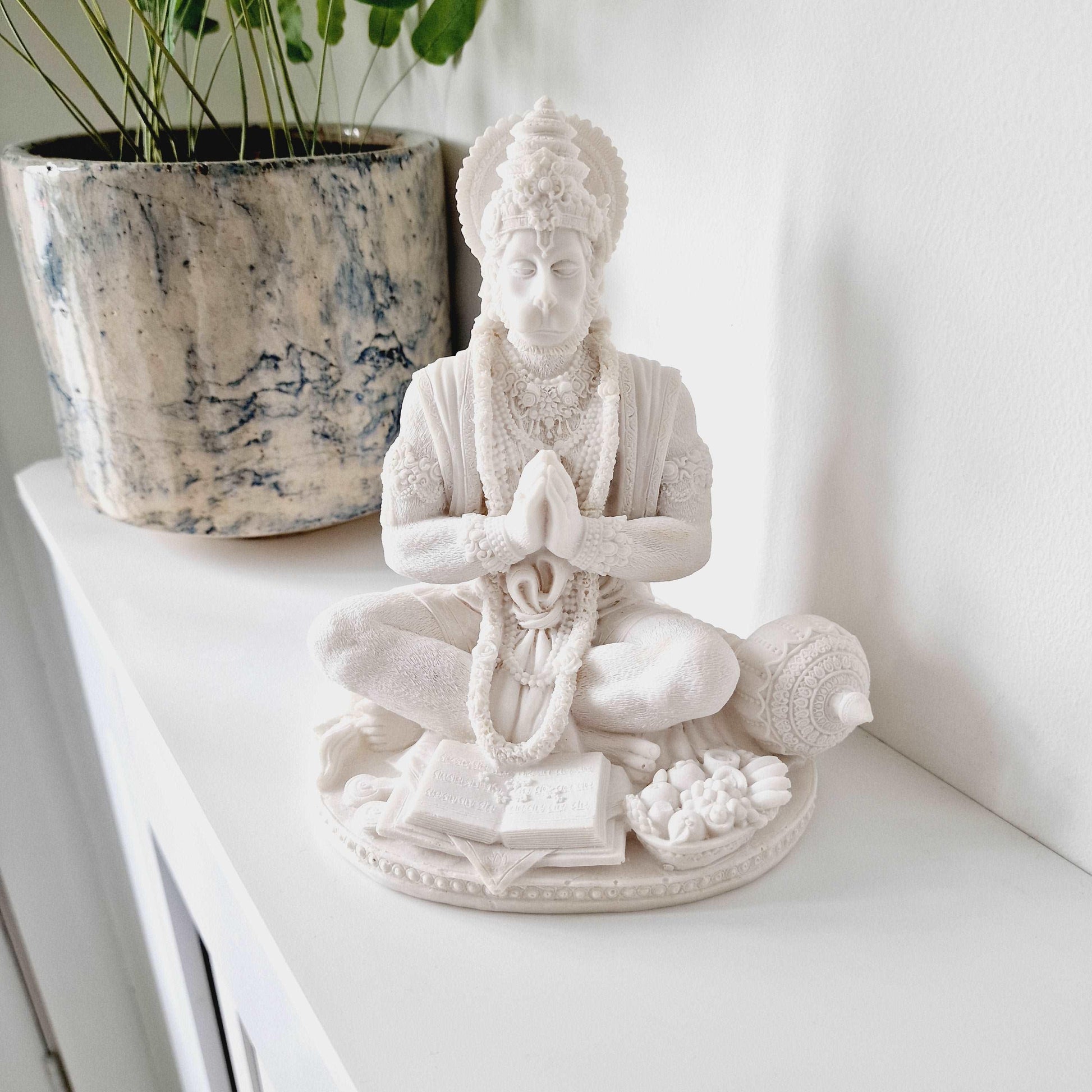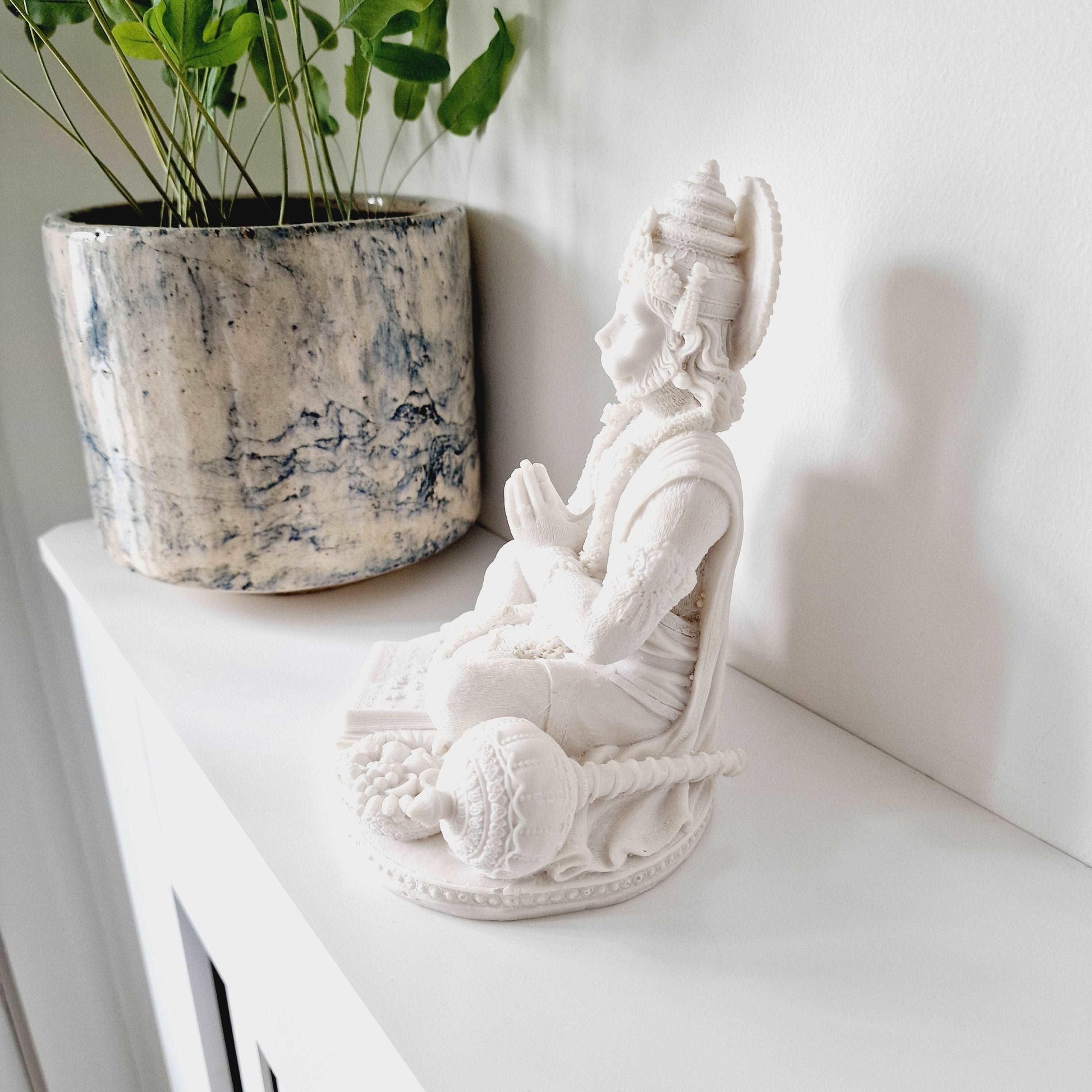 This mesmerizing White Hanuman Statue is made in a high-quality white resin that has a very subtle sparkle when it catches the light. A perfect gift for your home.